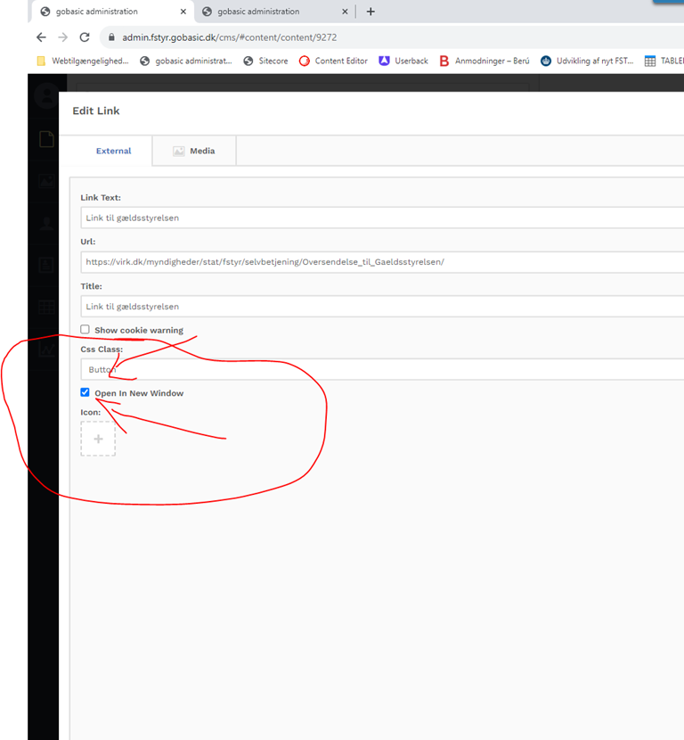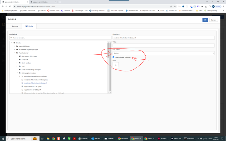 OBS: Vælger man medie-download (PDF) vises DOWNLOAD-teksten automatisk. Vælger man LINK står der ÅBN automatisk.